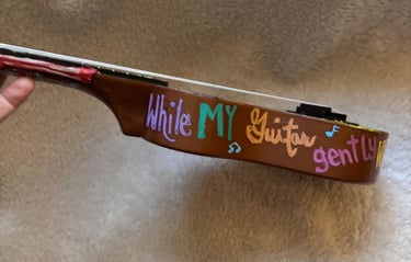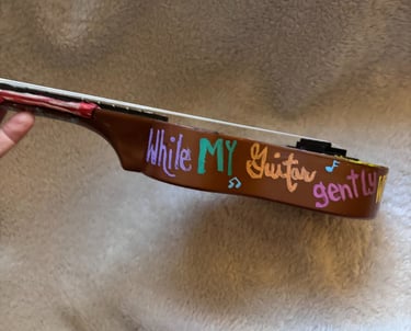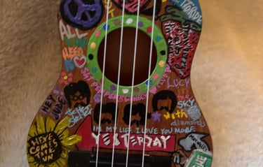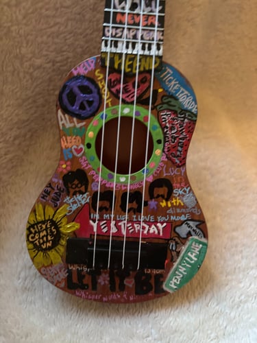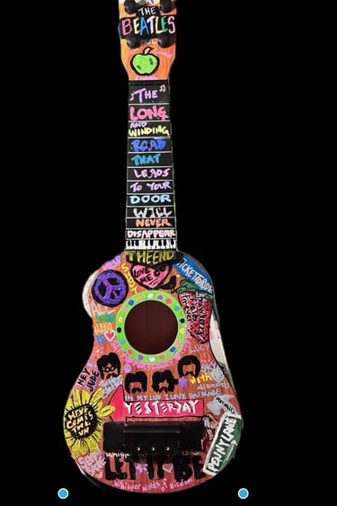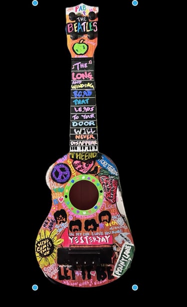 Inspired by the GOAT, this Beatles guitar is 17" tall, 5.5" wide and 2" in depth.